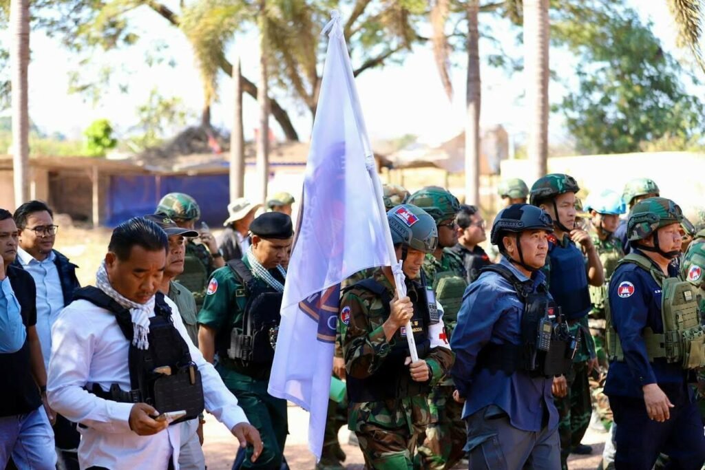 បន្ទាប់ពីមានការរំលោភបំពានយ៉ាងធ្ងន់ធ្ងរពីកងកម្លាំងយោធាថៃ ដែលបានប្រើប្រាស់អាវុធធុនធ្ងន់ផ្លោងចូលមកក្នុងភូមិសាស្ត្រទឹកដីកម្ពុជា ដែលបង្កឱ្យមានការខូចខាតហេដ្ឋារចនាសម្ព័ន្ធ ក៏ដូចជាផ្ទះសម្បែង និងទ្រព្យសម្បត្តិប្រជាពលរដ្ឋយ៉ាងដំណំ នៅព្រឹកថ្ងៃទី៨ ខែមករា ឆ្នាំ២០២៦នេះ ឯកឧត្តម មាន ចាន់យ៉ាដា អភិបាល នៃគណៈអភិបាលខេត្តឧត្តរមានជ័យ បានដឹកនាំក្រុមការងារចូលរួមជាមួយក្រុមអ្នកសង្កេតការណ៍អាស៊ាន (AOT) ដើម្បីពិនិត្យផលប៉ះពាល់ដែលទាហានថៃវាយប្រហារមកលើច្រកព្រំដែនអន្តរជាតិអូរស្មាច់ សង្កាត់អូរស្មាច់ ក្រុងសំរោង ខេត្តឧត្ដរមានជ័យ។
