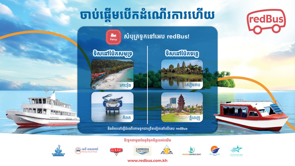 redBus Cambodia បើកដំណើរការសេវាកក់សំបុត្រទូក ដើម្បីសម្រួលការធ្វើដំណើរទូរទាំងប្រទេស