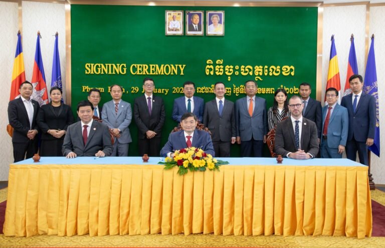 (ភ្នំពេញ)៖ លោក ហេង សួរ រដ្ឋមន្ត្រីក្រសួងការងារ និងបណ្ដុះបណ្ដាលវិជ្ជាជីវៈ លោក តាំង សិទ្ធី ប្រធានការិយាល័យតំណាងសភាពាណិជ្ជកម្មកម្ពុជា ប្រចាំទីក្រុងម៉ែលប៊ន និងលោក Jeremy Crawford នាយកប្រតិបត្តិសភាពាណិជ្ជកម្មប្រចាំទីក្រុងហ្គីឡុង នៃរដ្ឋវីតូរីយ៉ា ប្រទេសអូស្ត្រាលីបានចុះអនុស្សរណៈនៃការយោគយល់គ្នា (MoU)ស្តីពី «សហប្រតិបត្តិការនៅក្នុងការផ្លាស់ប្តូរជំនាញ ការបណ្ដុះបណ្ដាលសិស្សហ្វឹកហាត់…
